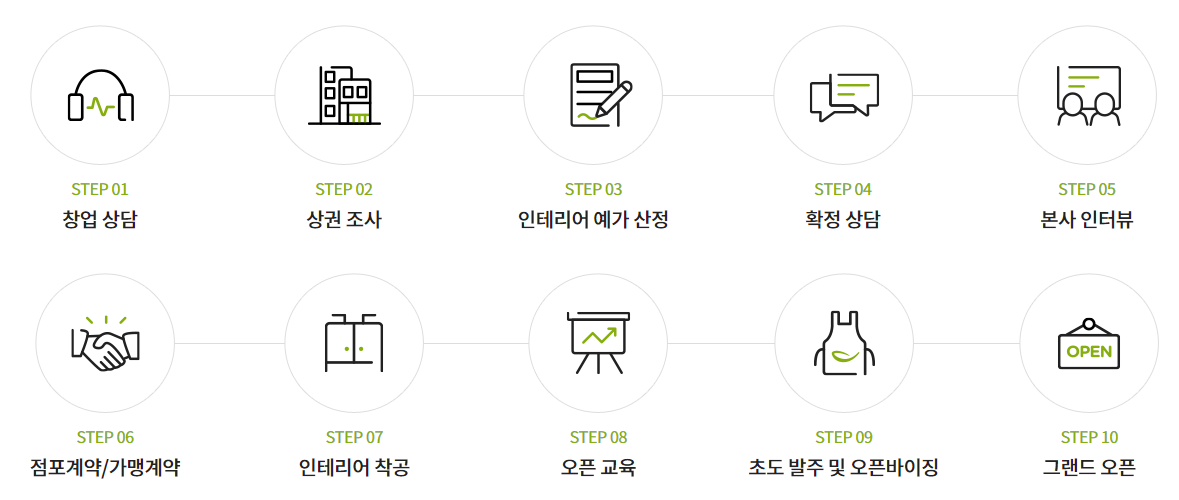 나아가 점포가 번창하도록 꾸준히 안내하는 것이 각시보쌈의 창업절차의 기본 목표입니다.