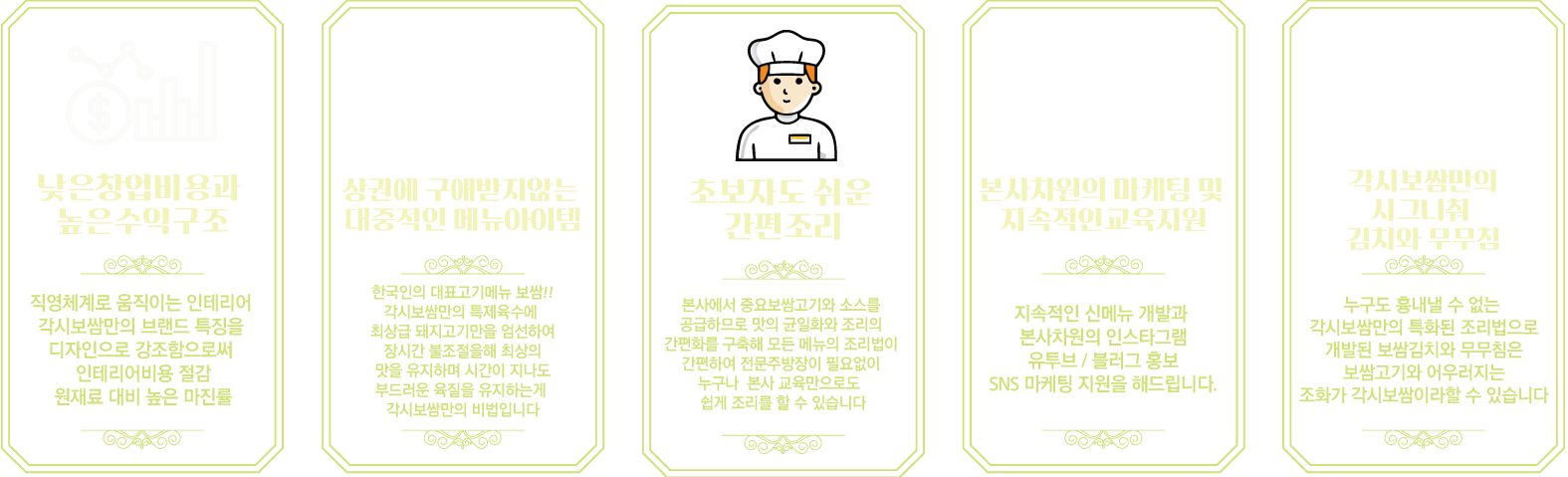 맛에 대한 고집, 고객에대한 서비스마음 이2가지는 양보할 수 없지만 고객님들의 고견 잘 청취해 동반성장 한다라는 마음으로 점주님들과 같이 평생직장이 될 수 있도록 하나하나 만들어 나가겠습니다